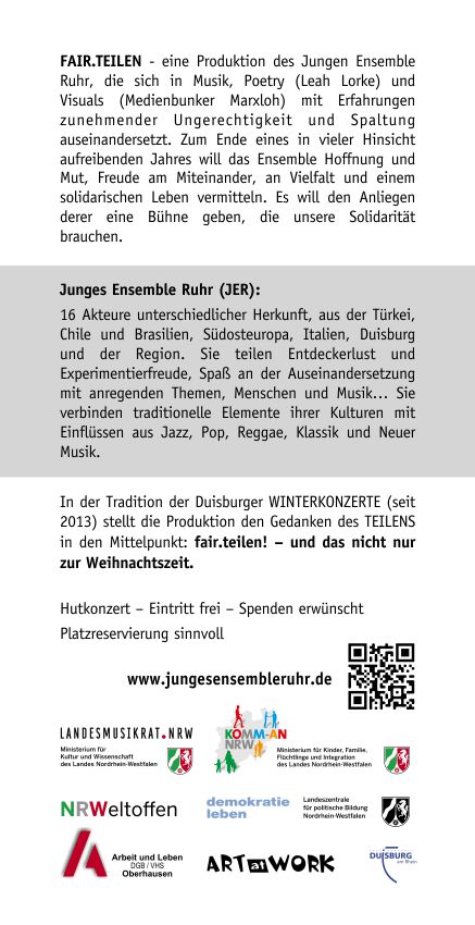 - Winterkonzert des JER (junges Ensemble Ruhr) am 21.11 um 19 Uhr im Steinhof Duisburg